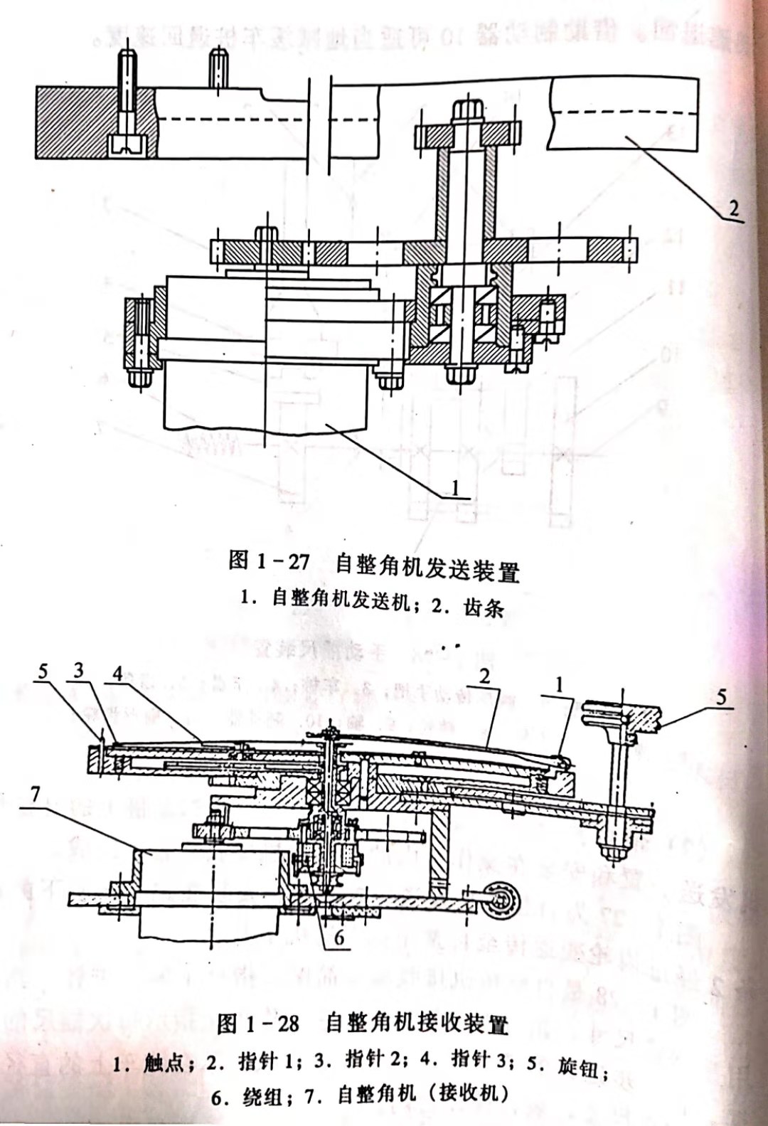 圖1-27為自整角機(jī)發(fā)送裝置簡圖。安裝在跑車車樁下的條2經(jīng)過齒輪變速傳至自整角機(jī)發(fā)送機(jī)1上。