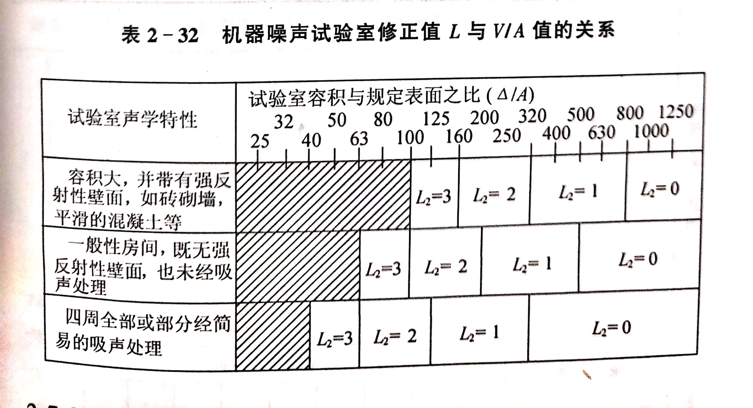 為修正試驗(yàn)室對(duì)機(jī)床噪聲測(cè)量的影響,即須在實(shí)測(cè)值中減去試驗(yàn)室的修正值L2,如表2-32所示。