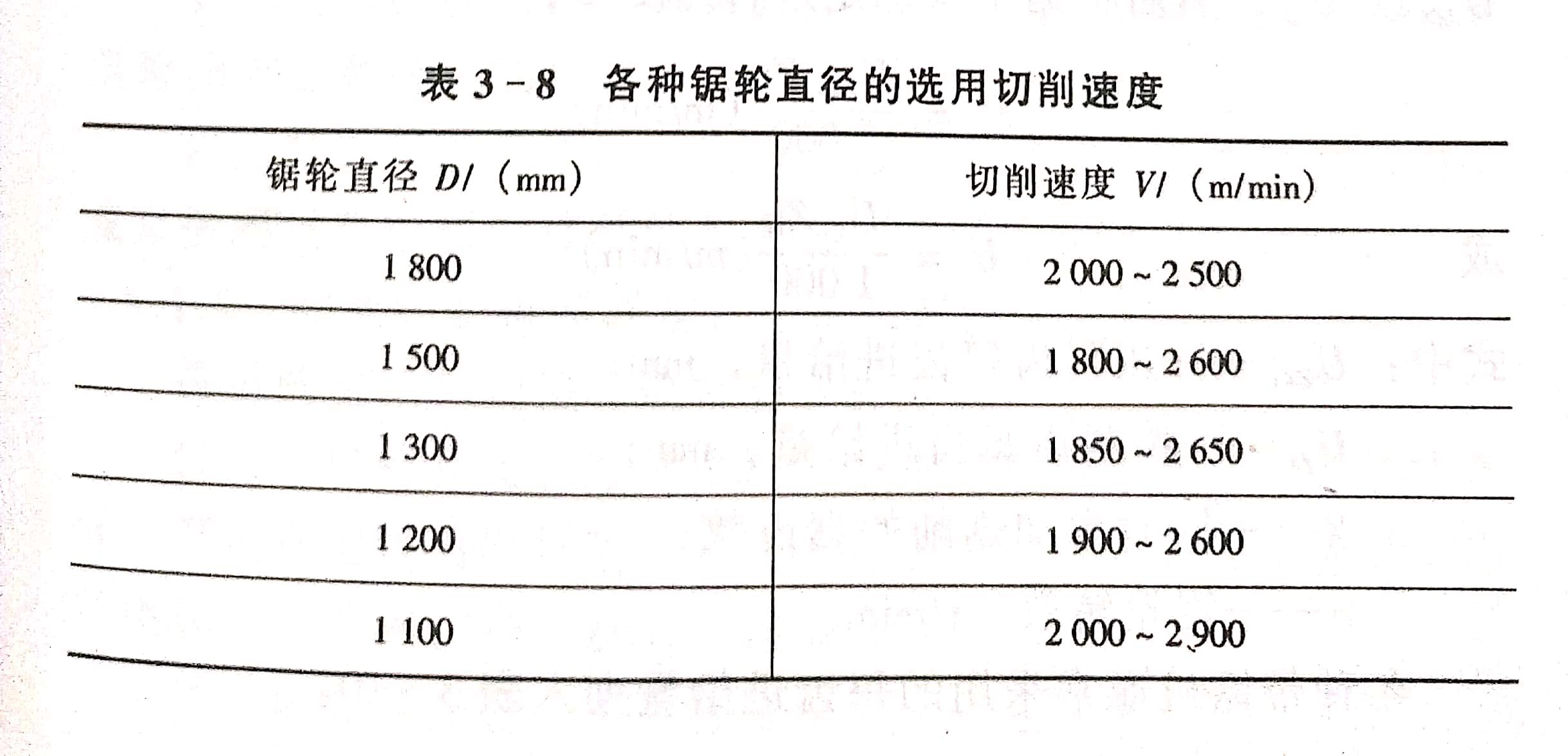 對(duì)于較硬的闊葉材,如山毛櫸、蒙古櫟切削速度為40~46極硬材或凍闊葉材,切削速度為30~35m/s