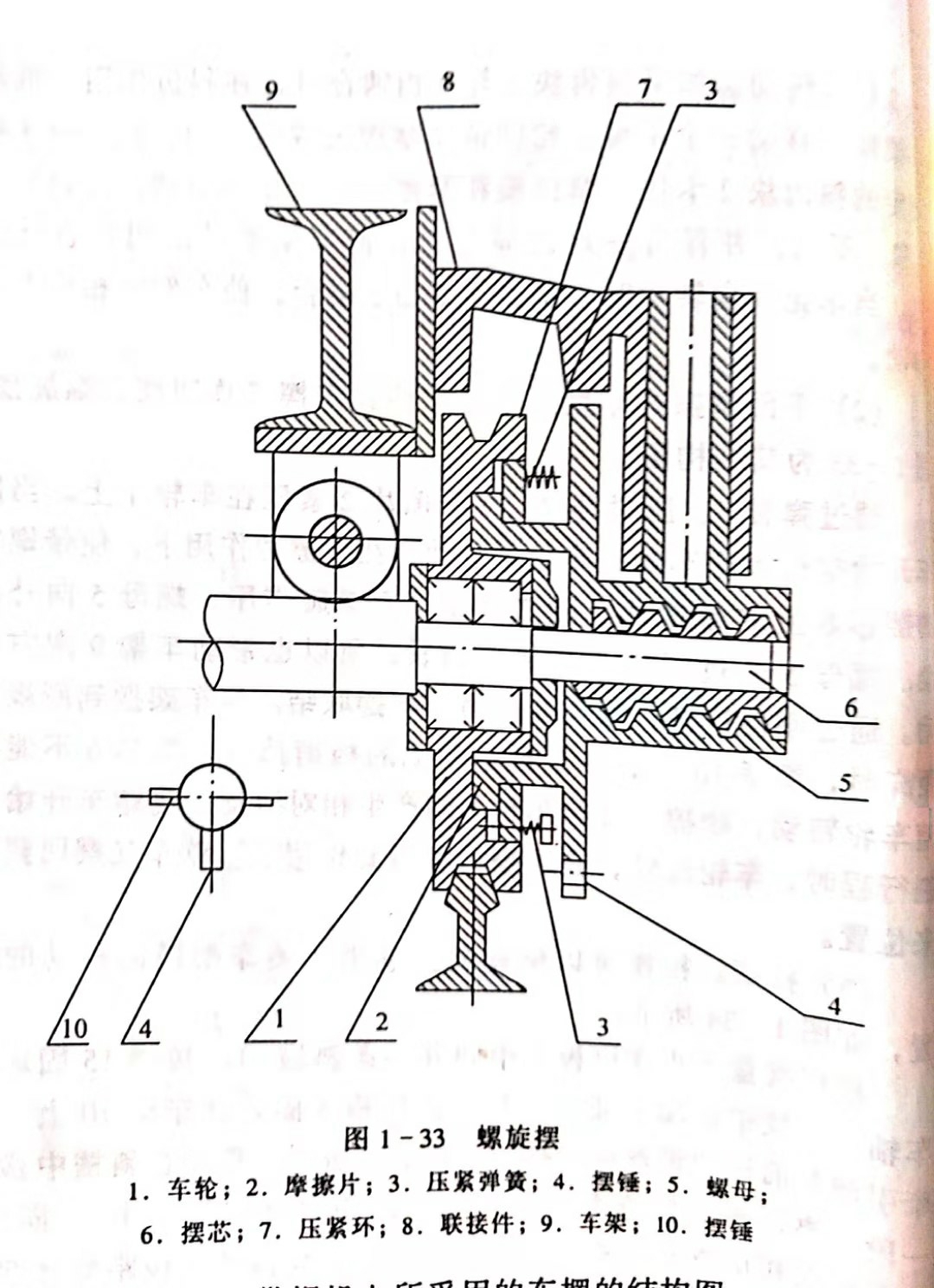 (2)平面摩擦式車擺。平面摩擦式車擺又稱明擺、螺旋擺,圖1-33為其結(jié)構(gòu)圖。